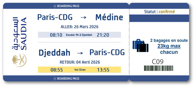 Omra Mars 2026 Luxe Face Haram – vol saudia